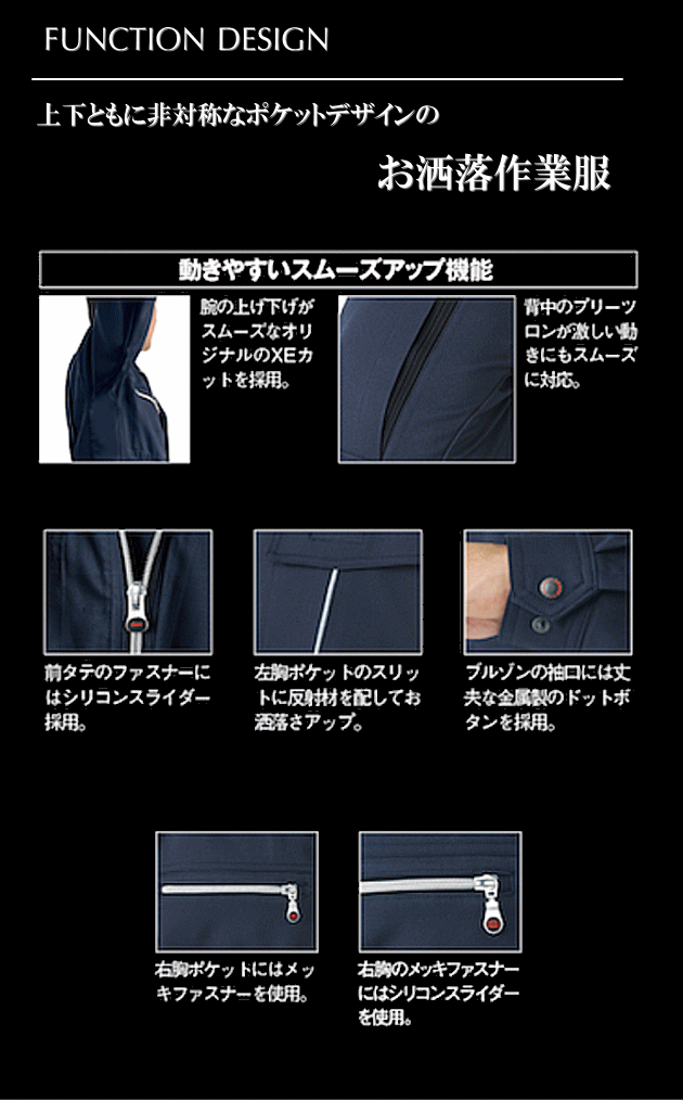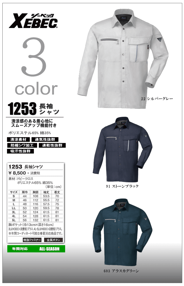 帯電防止素材・清涼素材防縮シワ加工・速乾性抜群・吸汗性抜群・通気性抜群 >>仕様の詳細はこちら参照 |