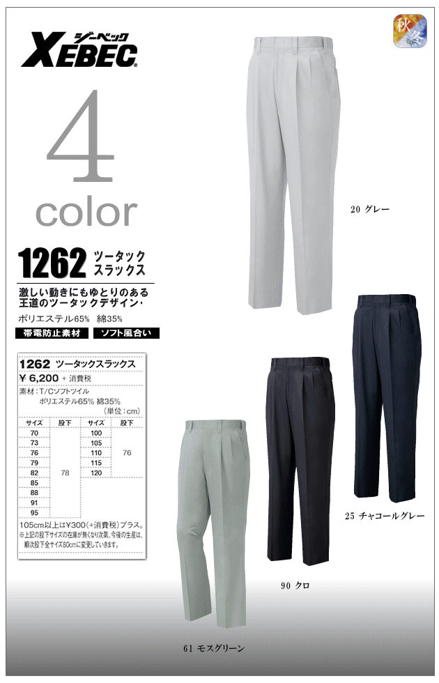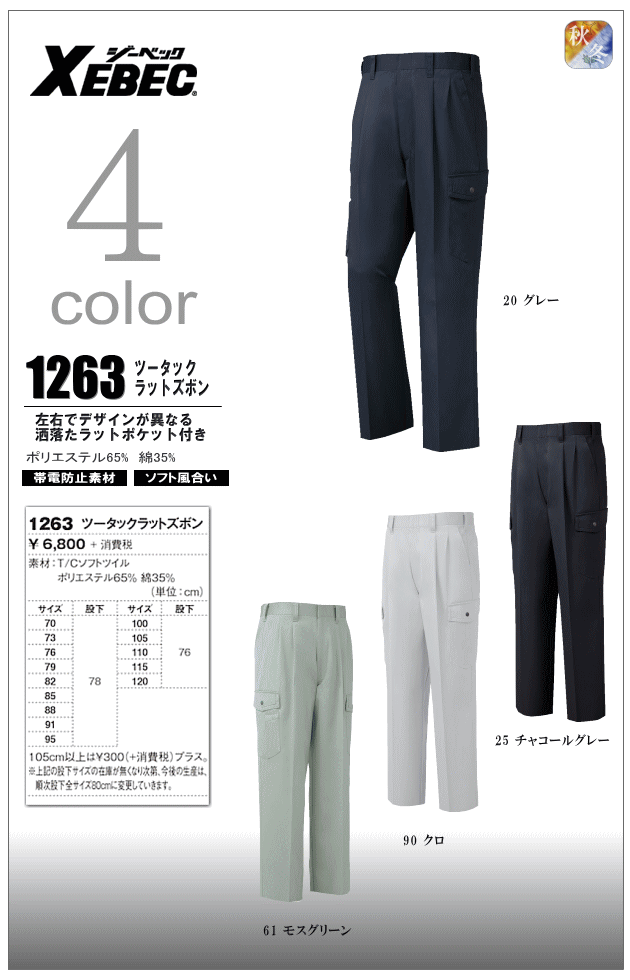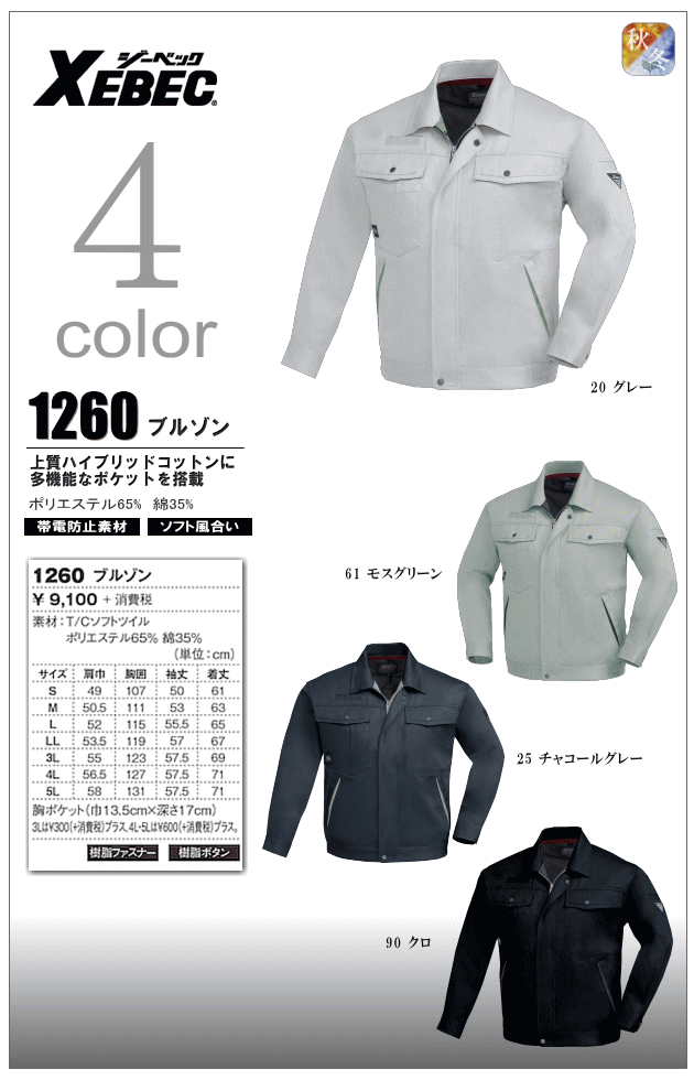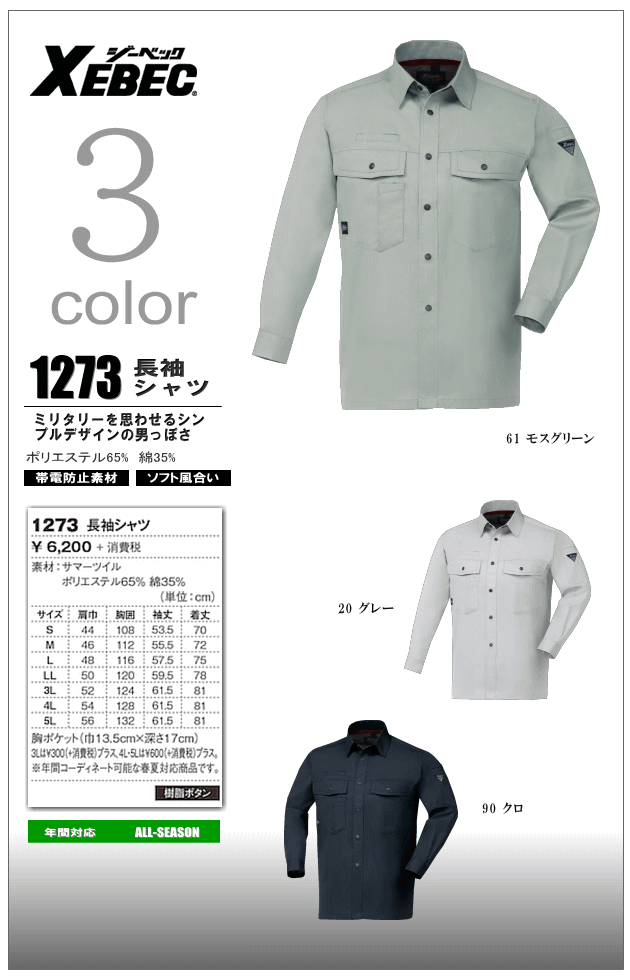 帯電防止素材・ソフト風合い >>仕様の詳細はこちら参照 | |