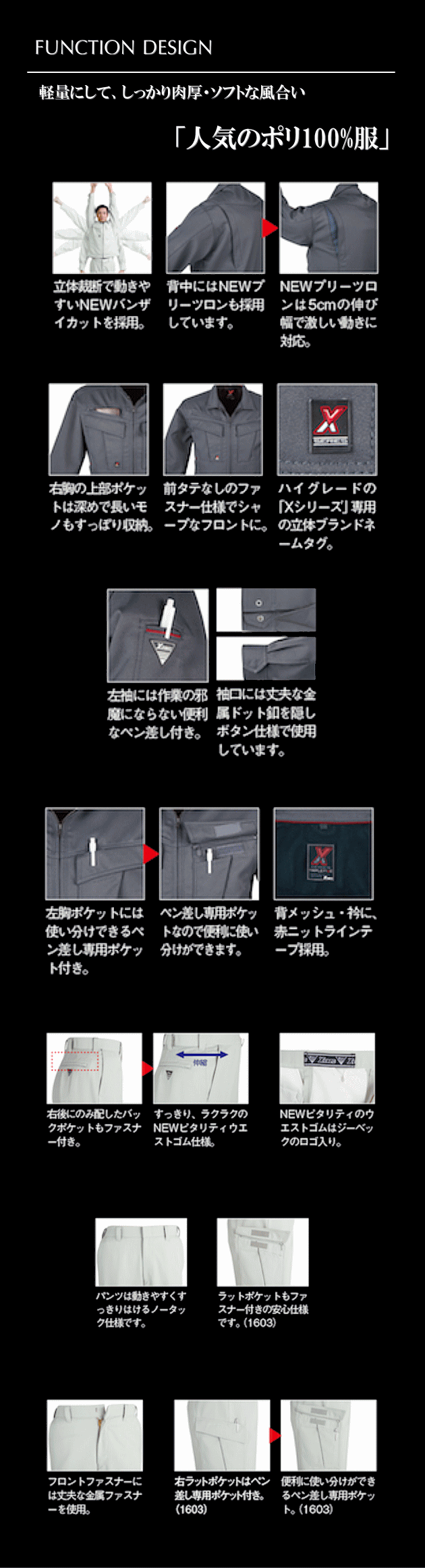 | ■備考 | 暖か裏面素材・バンザイカット・プリーツロン >>機能性はこちら | |