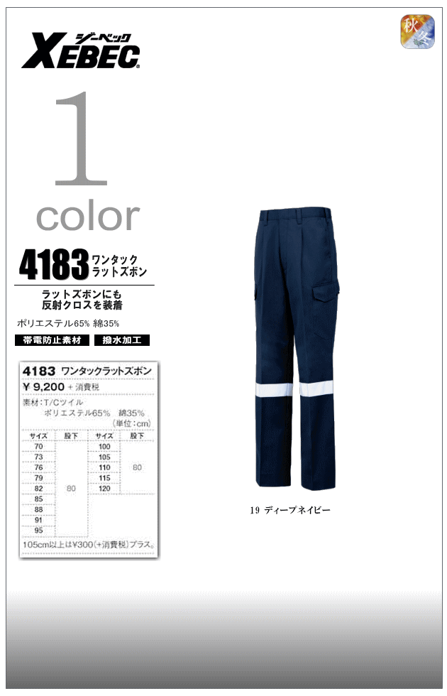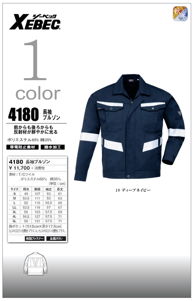 帯電防止素材・撥水加工 >>仕様の詳細はこちら参照 | |