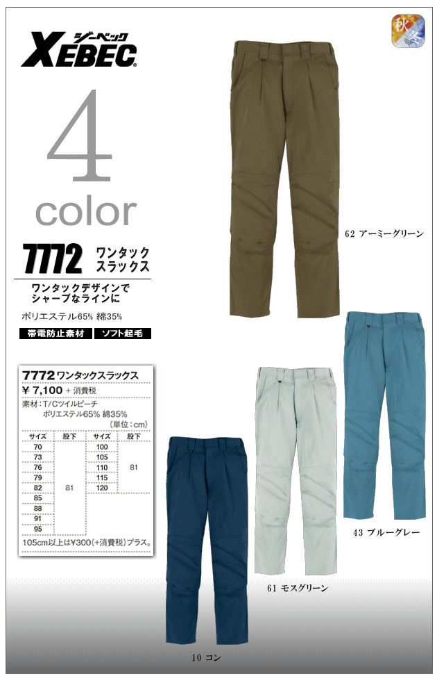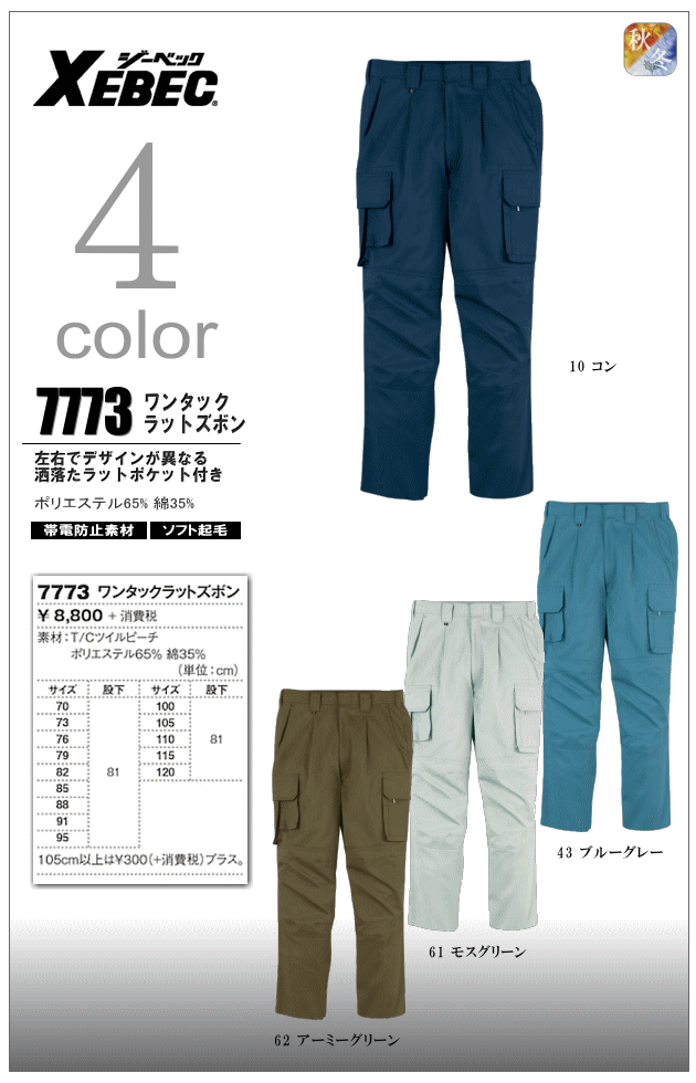 帯電防止素材・ソフト起毛・抗菌防臭加工 >>仕様の詳細はこちら参照 | |