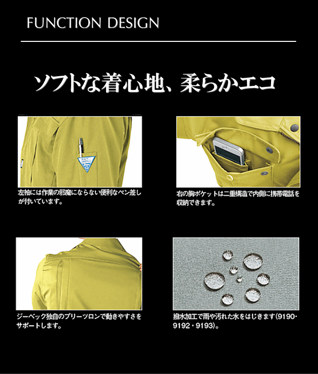 帯電防止素材・撥水加工・リサイクル素材 >>仕様の詳細はこちら参照 | |