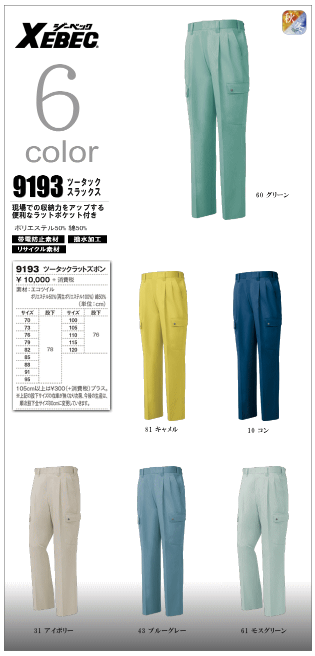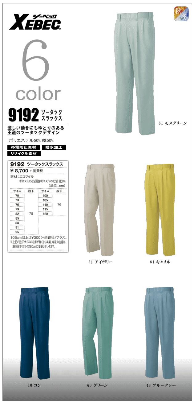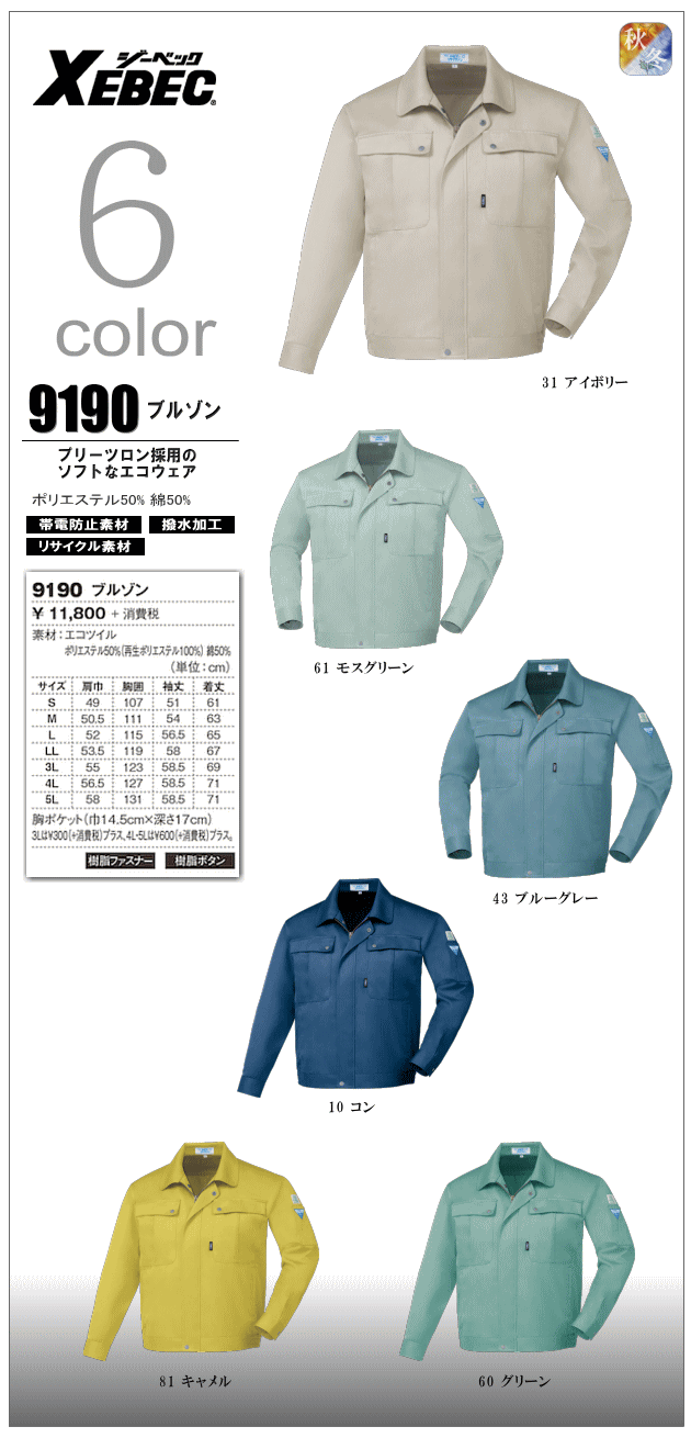 帯電防止素材・ソフト風合い・リサイクル素材 >>仕様の詳細はこちら参照 | |