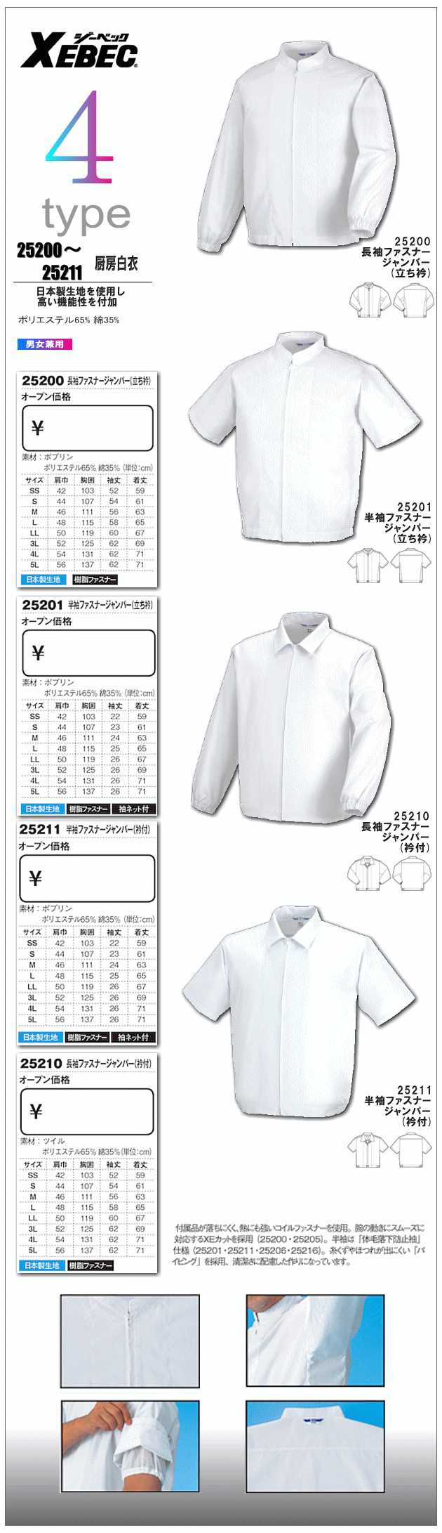 | ■素材 | ポプリン(25200・25201・25211) ポリエステル65% 綿35% ツイル(25210) ポリエステル65% 綿35% >>素材はこちら参照 |