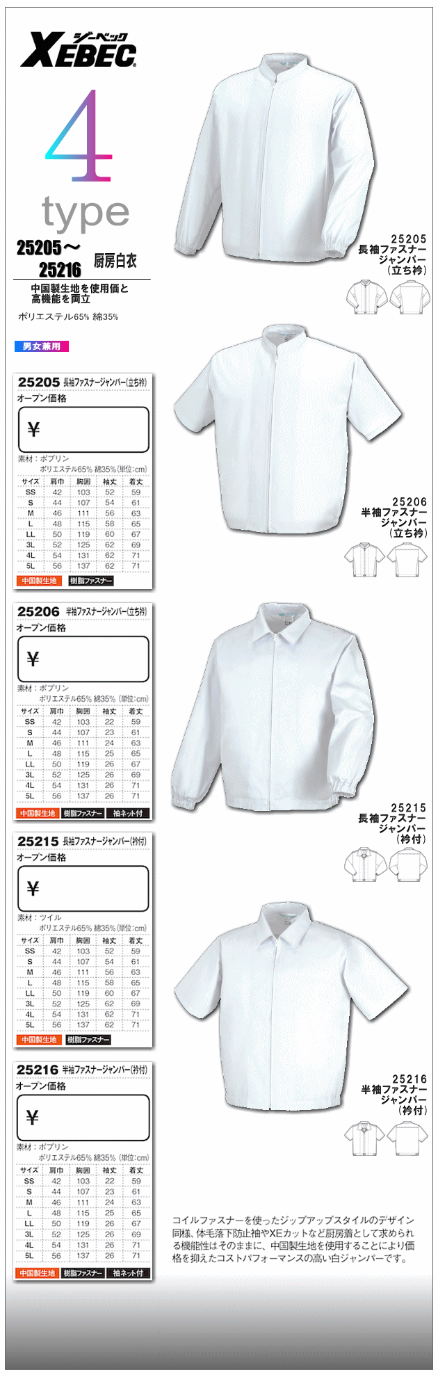 | ■素材 | ポプリン(25205・25206・25216) ポリエステル65% 綿35% ツイル(25215) ポリエステル65% 綿35% >>素材はこちら参照 |