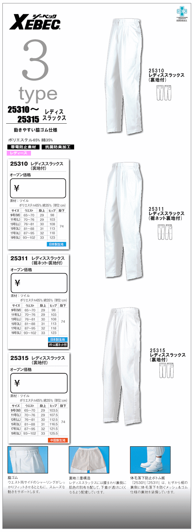 帯電防止素材 抗菌防臭加工 >>仕様の詳細はこちら参照 | |
