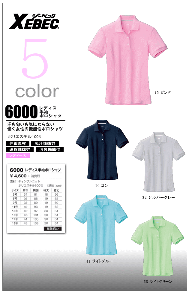 伸縮素材 吸汗性抜群 速乾性抜群 消臭機能付 >>仕様の詳細はこちら参照 |