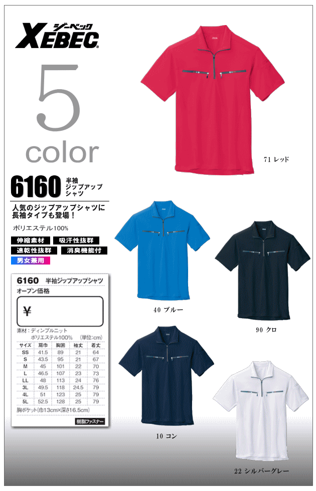 伸縮素材 吸汗性抜群 速乾性抜群 消臭機能付 >>仕様の詳細はこちら参照 |